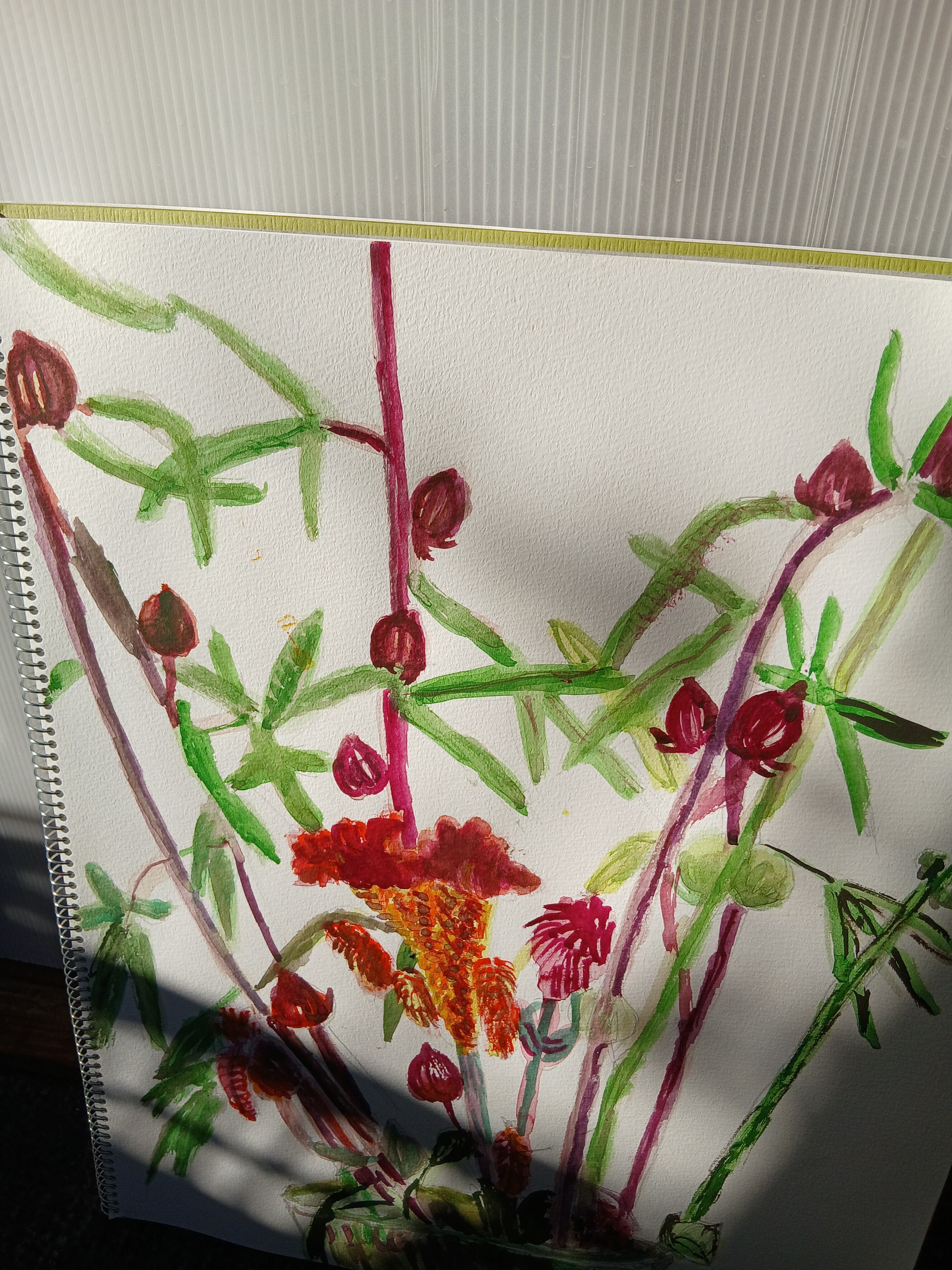 鶏頭水彩画