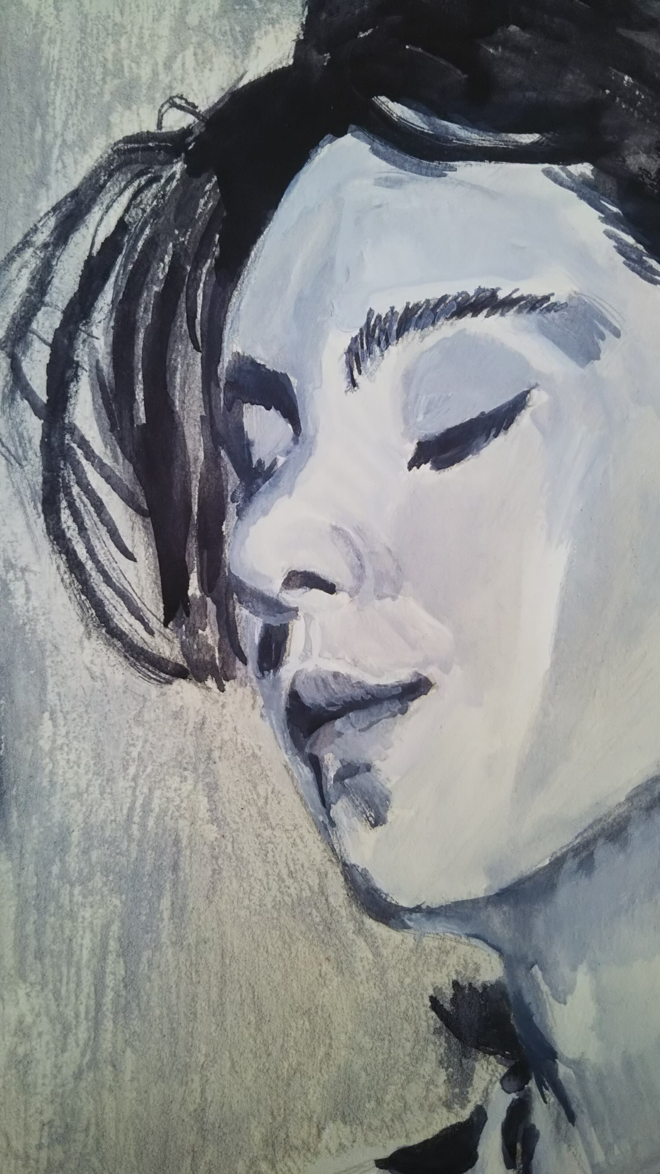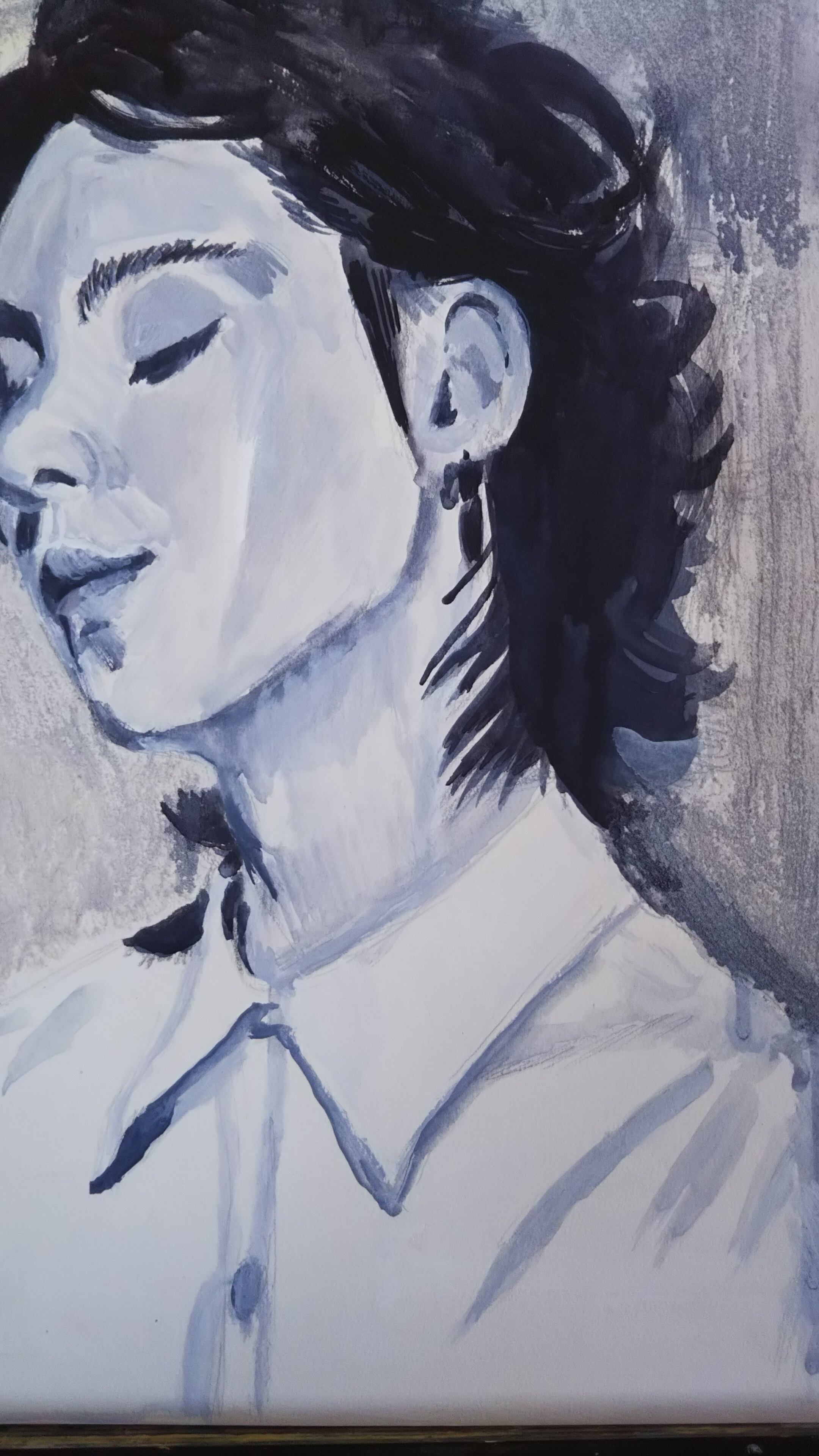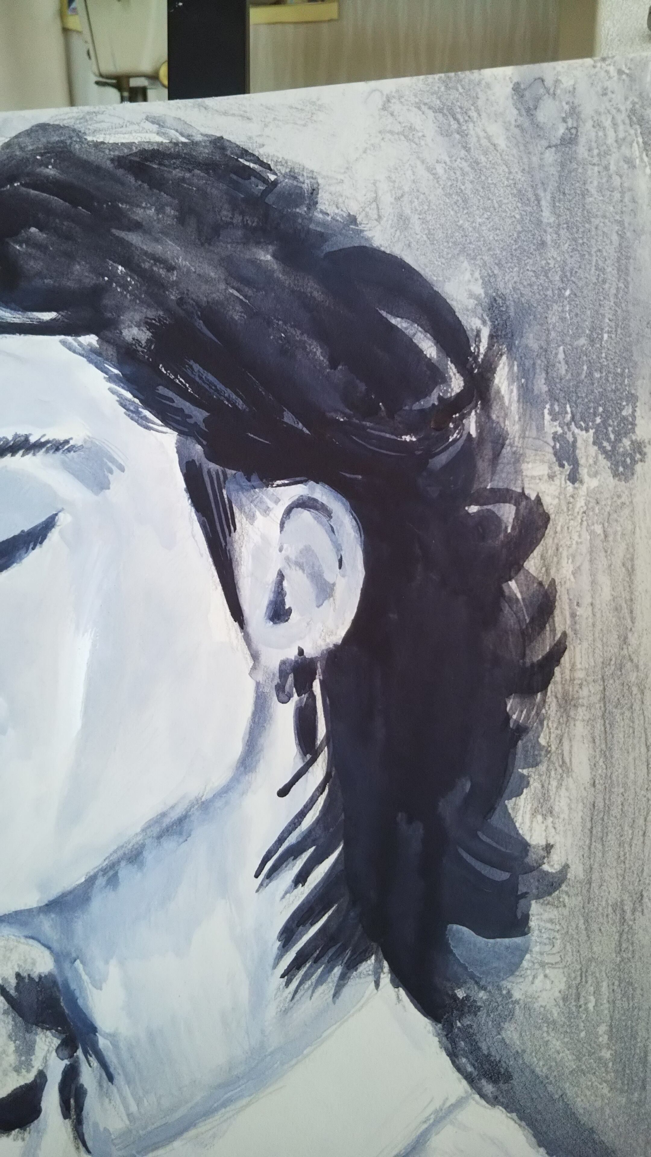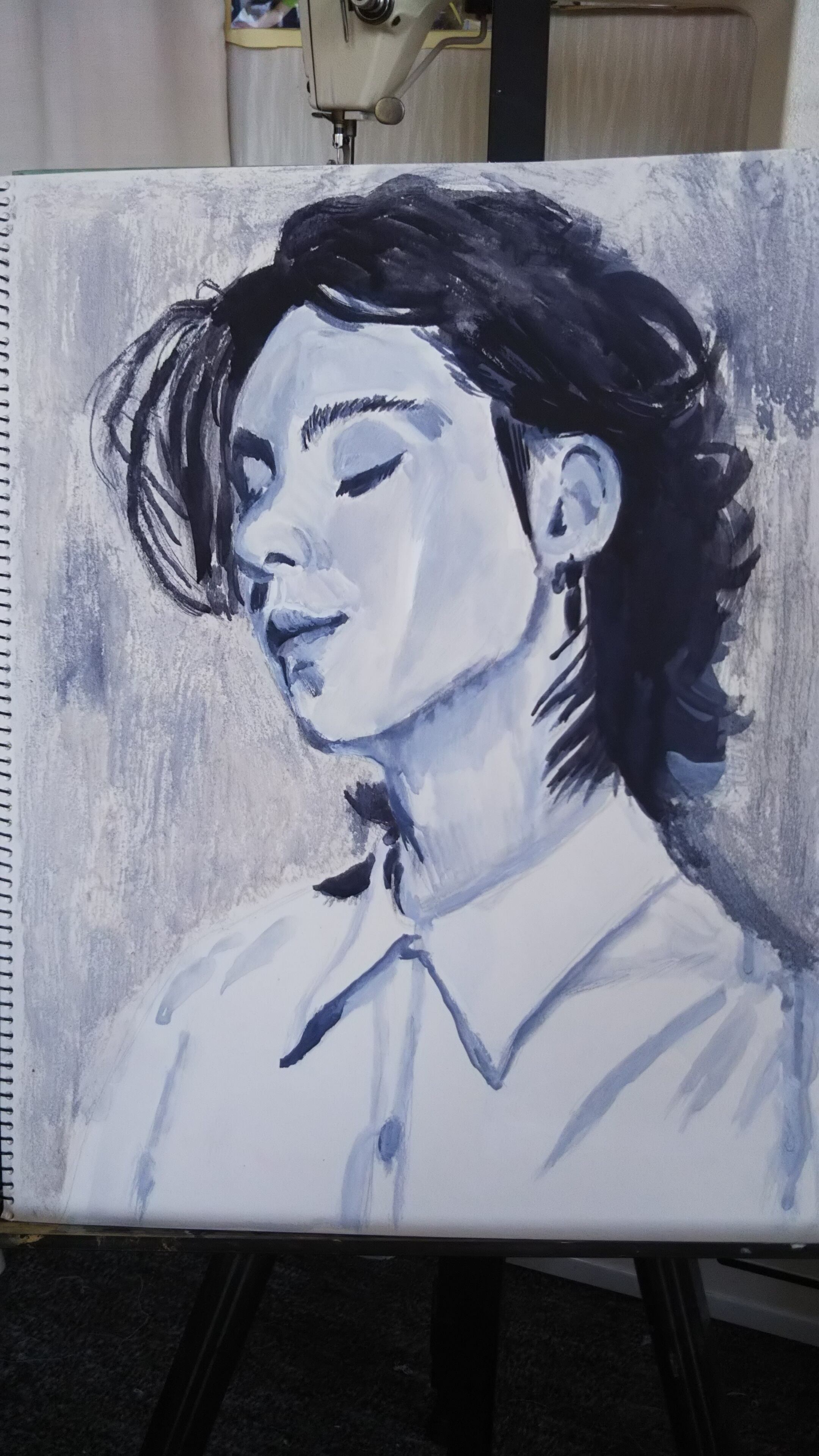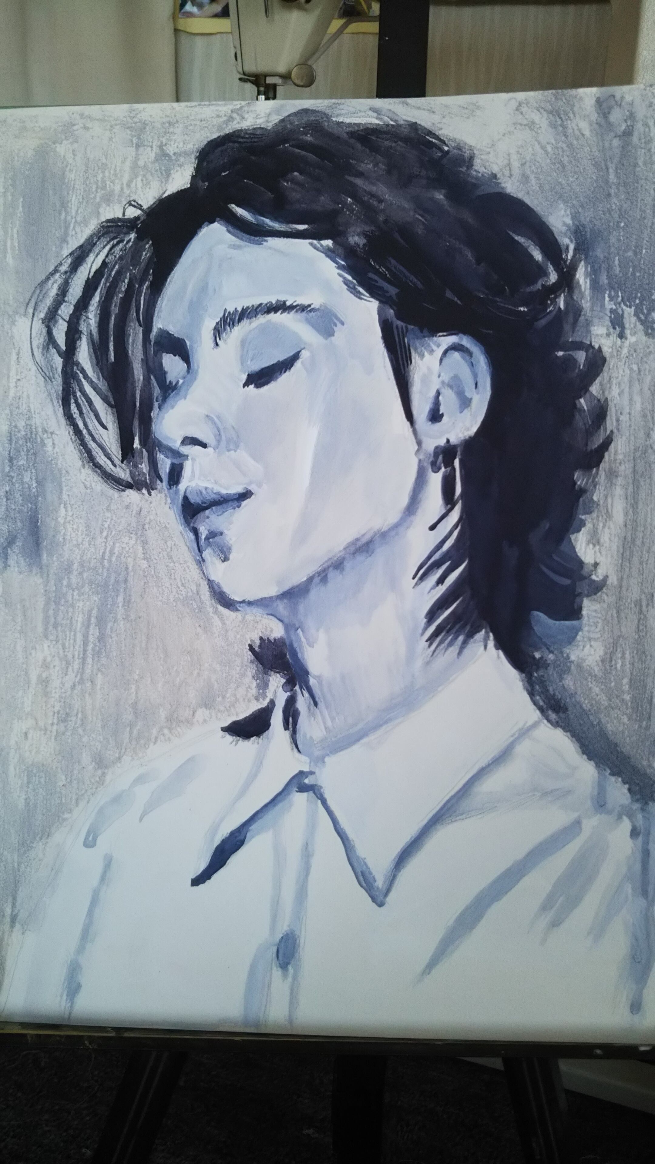 F6サイズのスケッチブックに描きましたミンユンギです。バックがモデリングペーストでざらざらしています。